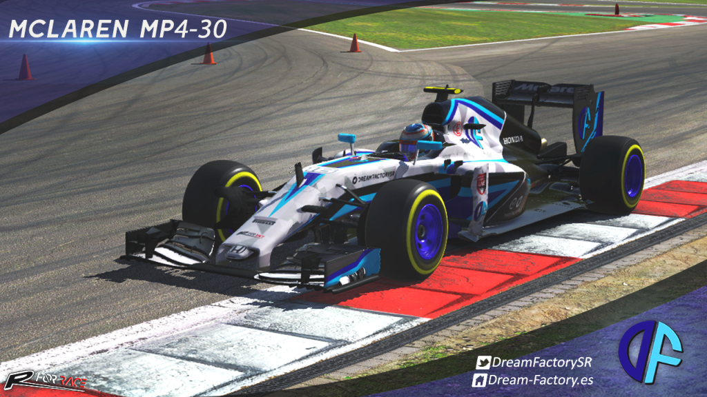 Diseño para iRacing, el F1 de 2016, el McLaren Mp4-30 ya tiene los colores de Dream Factory Si tu tambien quieres un diseño profesional para iRacing, ya sea en el McLaren Mp4-30, o en otro de la larga lista de coches que hay en iRacing, no dudes en contactar con nosotros.